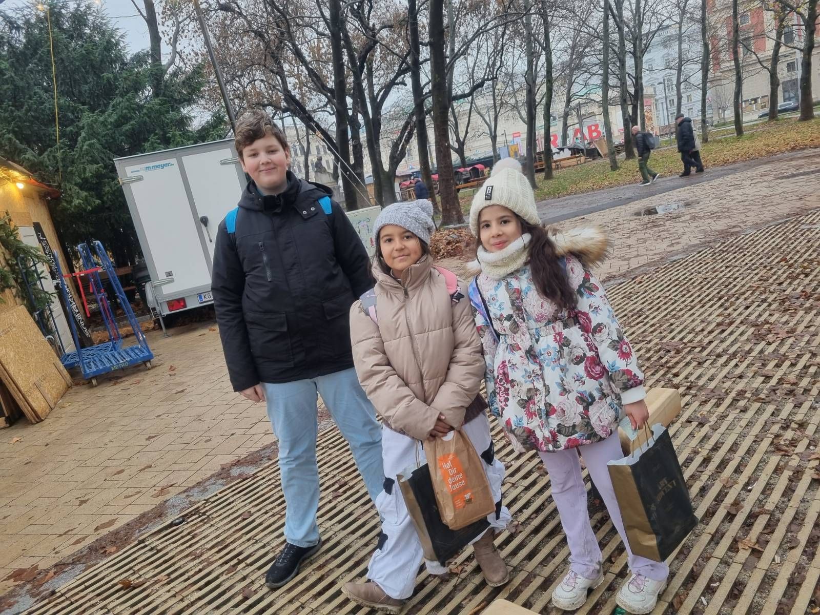 Die Klassengemeinschaft der 1B wurde beim Christkindlmarkt am Karlsplatz durch Kinderpunsch, Waffeln und Eselstofftiere gestärkt.