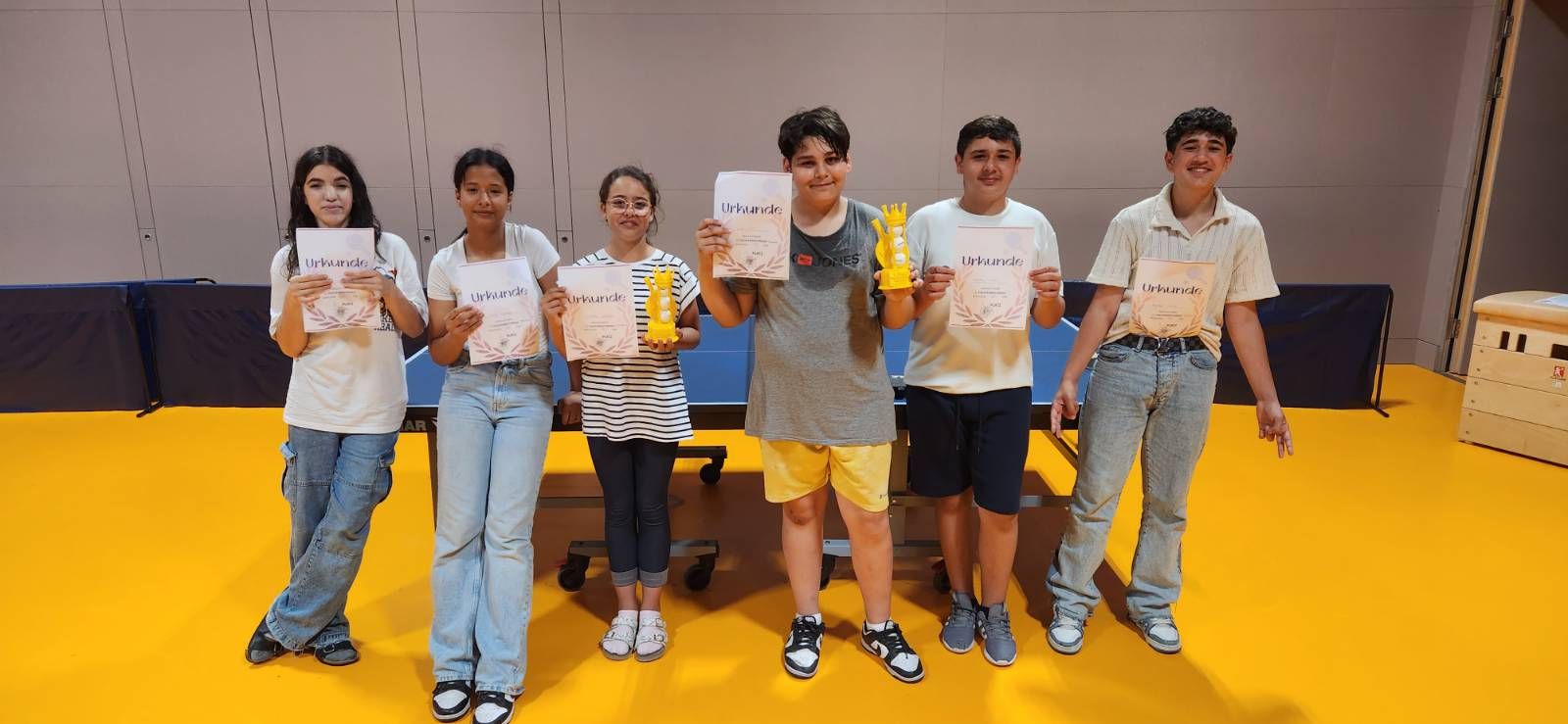 Die überraschenden SiegerInnen bei der Tischtennis-Schulmeisterschaft kommen aus den 1. Klassen. Bei den Mädchen gewann Sophie aus der 1B, vor den 3. Klasslerinnen Nifin aus der 3A, sowie Meryem aus 3B, 4. wurde Zuzana aus 3B. Das Finale auf 2 Gewinnsätze endete 11:7 und 11:5. Die beiden Semifinalspiele waren dagegen mit 2:1 beide sehr knapp. Bei den Burschen gewann Leon Dötl vor Mikail aus der 2C. 3. wurde Atakan aus der 3A.