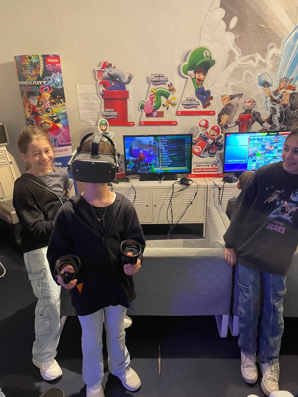 Die 1A unternahm einen spannenden Ausflug ins Computer- und Gaming-Museum. Die Schülerinnen und Schüler erhielten eine beeindruckende Führung, die sie durch die Geschichte der Videospiele führte. Von den ersten Arcade-Automaten der 1970er Jahre bis hin zu modernen Konsolen wurde alles anschaulich erklärt und gezeigt. Nach der informativen Tour durften die Kinder selbst Hand anlegen und auf diversen Konsolen spielen. Besonders beliebt waren Klassiker wie "Super Mario" auf dem NES und neuere Spiele auf der PlayStation 4. Ein besonderes Highlight war die VR-Brille, mit der die Schülerinnen und Schüler in virtuelle Welten eintauchen konnten.Dieser Ausflug war nicht nur lehrreich, sondern machte allen riesigen Spaß und wird sicher noch lange in Erinnerung bleiben.
