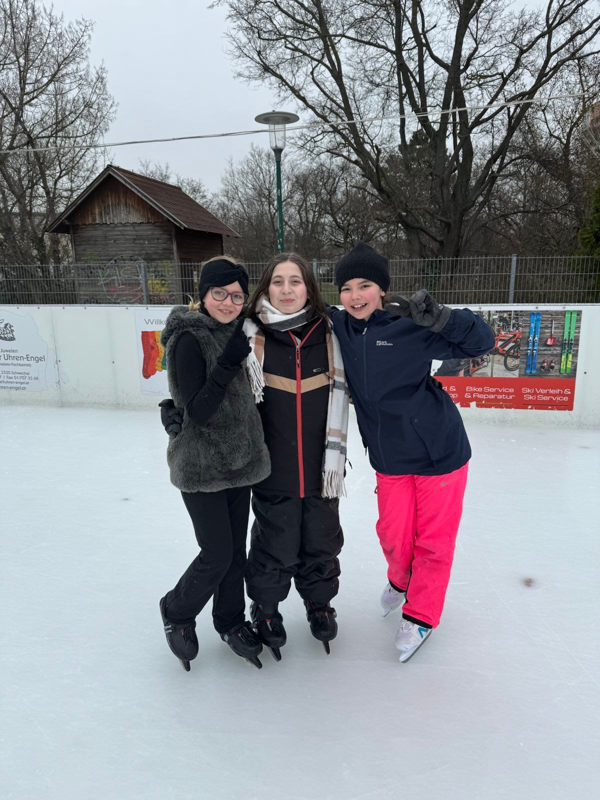 Bei Sonnenschein genießt die 3B das Eislaufen in Schwechat.