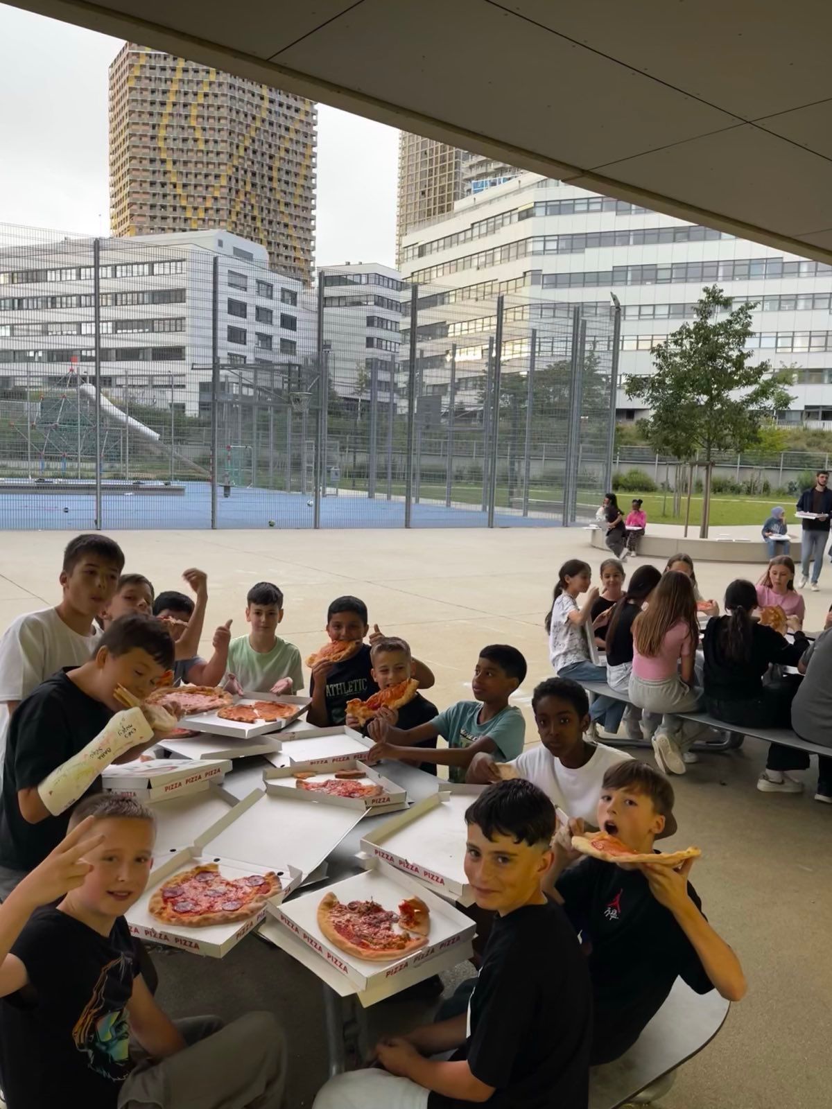 Die Übernachtung in der Schule war für alle ein unvergessliches Erlebnis. Der Abend begann mit diversen sportlichen Aktivitäten im Schulgarten, gefolgt von einem gemeinsamen Abendessen im Freien. Unsere Pizzaboten lieferten pünktlich und zur vollen Zufriedenheit aller. Anschließend verwandelten sich die Klassenräume in Kinosäle, in denen unterschiedliche Filme geschaut wurden. Später als gedacht fielen wir völlig erschöpf auf die Weichböden im Turnsaal und schliefen sofort ein. Am nächsten Morgen gab es ein gemeinsames Frühstück, bevor es müde, aber glücklich, mit unserem Fußballturnier weiterging.
