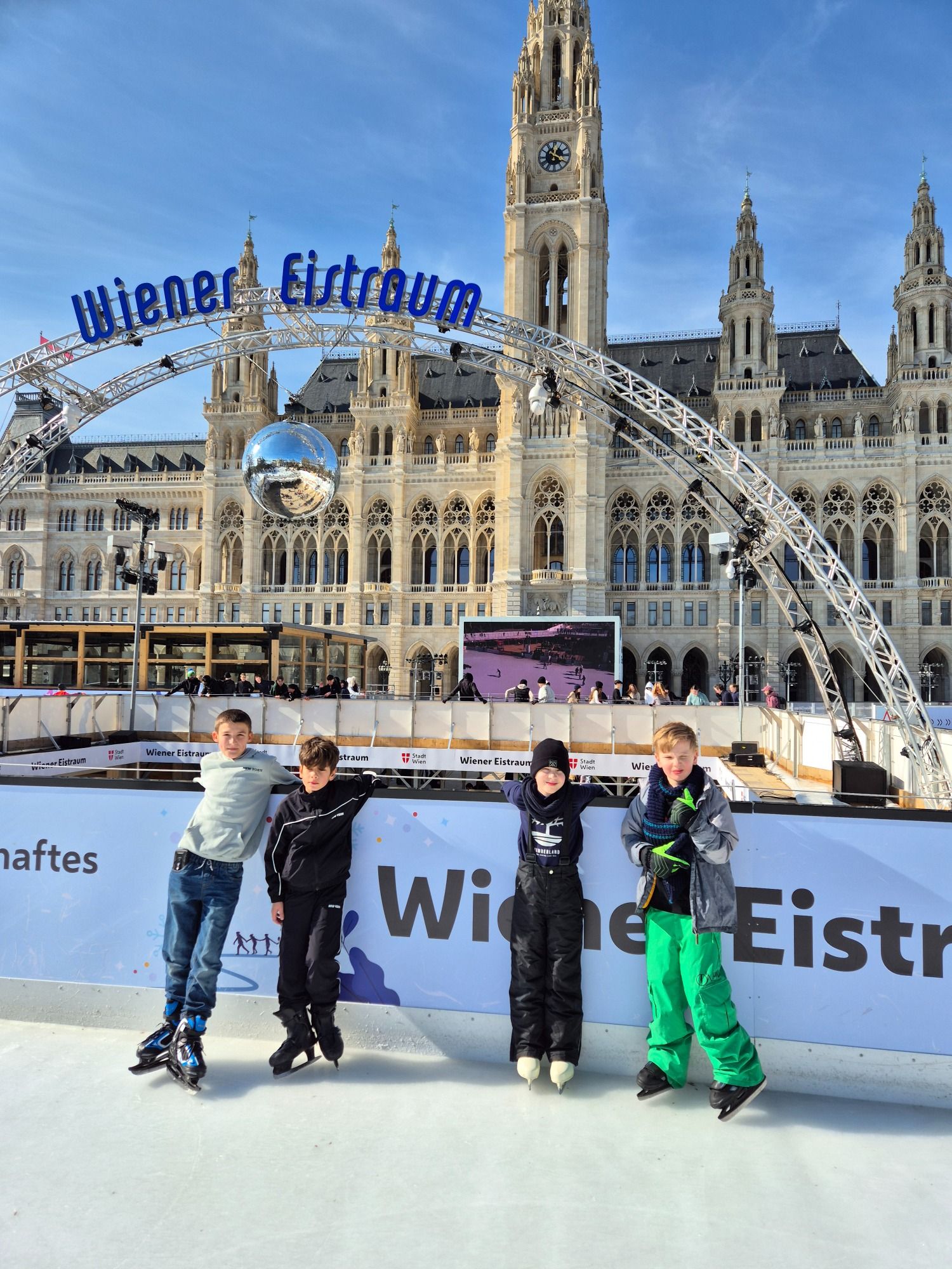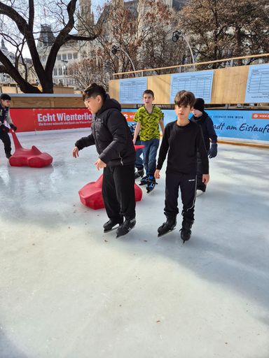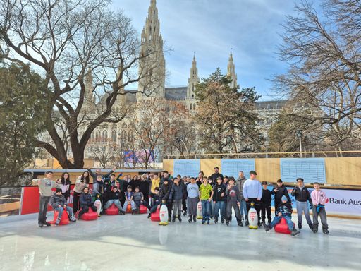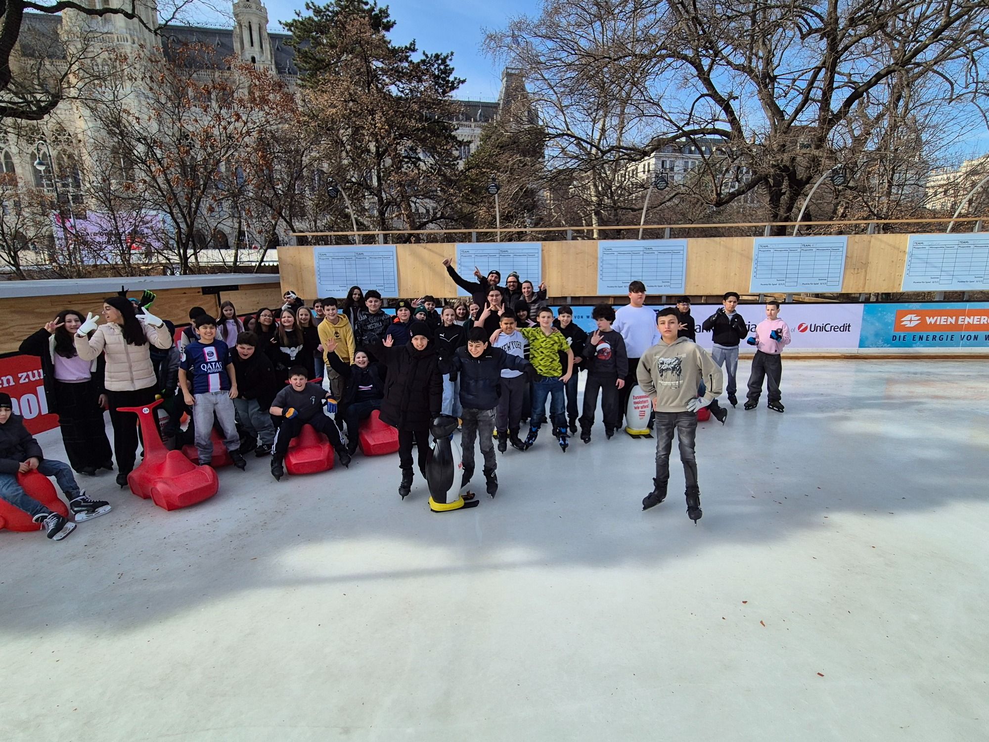 Im Rahmen des Sportunterrichts machten die Klassen 1A und 1B eine Exkursion auf den Eislaufplatz vor dem Wiener Rathaus. Viele SchülerInnen standen das erste mal in ihrem Leben in Schlittschuhen auf dem Eis, waren aber am Ende des Tages kleine Eislaufprofis. Nicht nur die Stimmung sondern auch das Wetter war großartig!