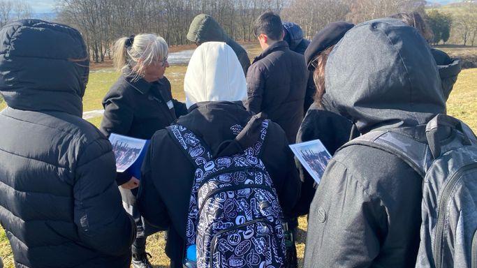 Im Hauptteil der Führung wurde das Gelände des ehemaligen Konzentrationslagers in mehreren Stationen besichtigt. Dabei erhielten die Gruppen Einblicke in die Lebensrealitäten von Opfern und Tätern sowie in die vielfältigen Verbindungen zwischen dem Lager und seinem zivilen Umfeld.