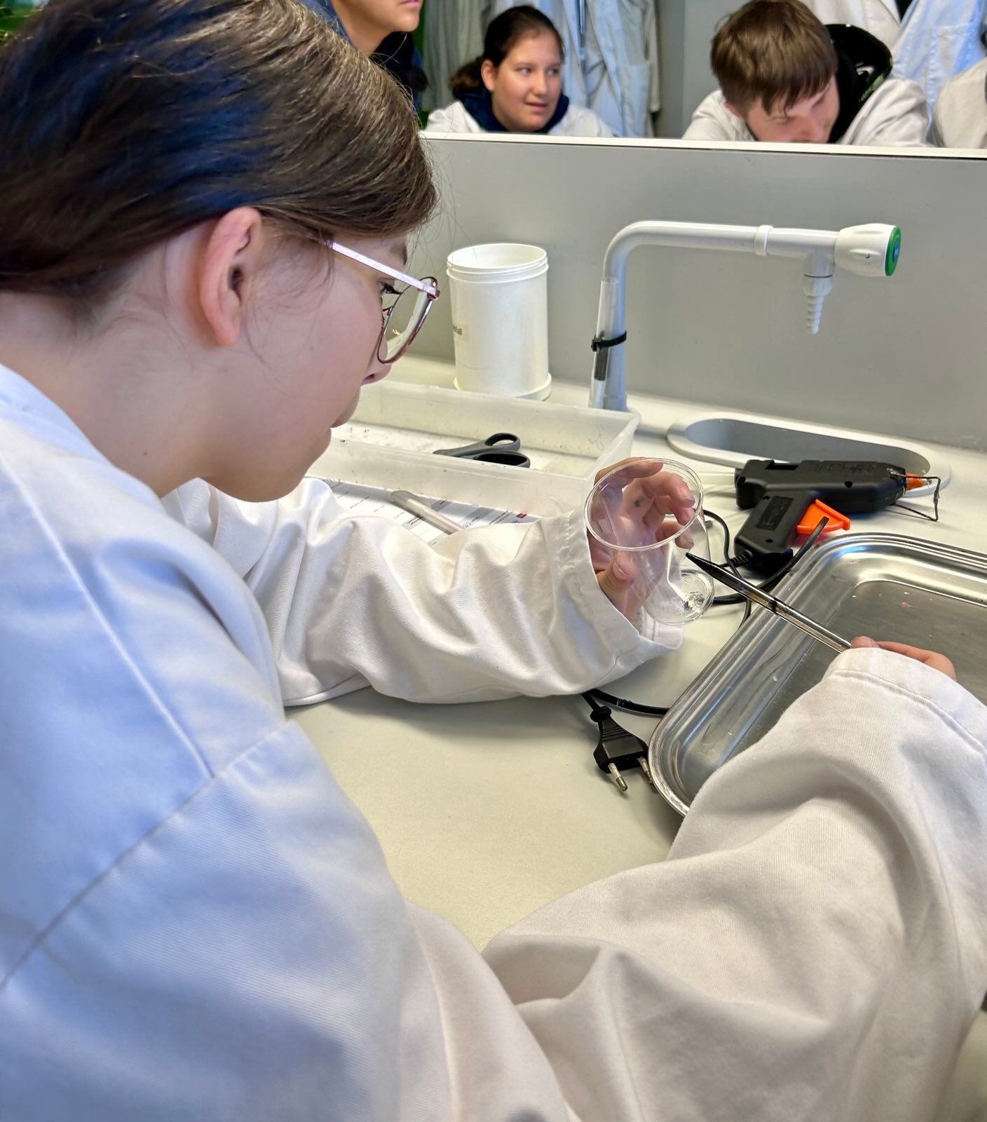 Im Spezialpraktikum warteten abwechslungsreiche Labor-Experimente auf die SchülerInnen. Dabei beschäftigten sie sich u.a mit der Frage warum Fett und altes Speiseöl nichts im Kanal zu suchen haben. Neben Wassertests, bauten sie selbst eine Fettabscheide-Anlage.