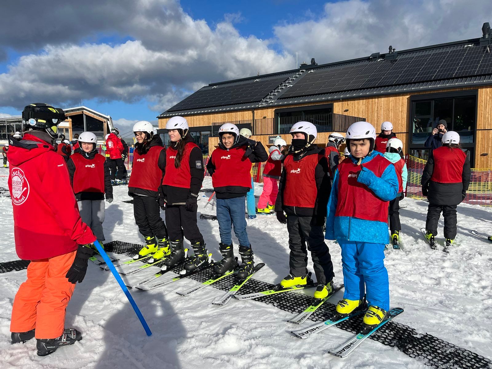 Bei wunderschönem Wetter und perfekten Pistenverhältnissen, machten wir unsere ersten Schwünge auf echtem Schnee. Nach dem anstrengenden Skitag, gab es noch eine Stärkung in der Skihütte, bevor es mit dem Bus wieder zurück zur Schule ging.